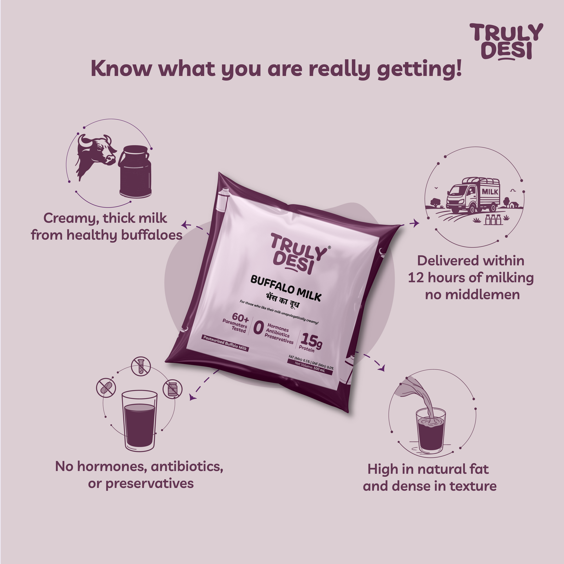 Yes, buffalo milk is A2. In fact, all indigenous breeds naturally produce milk containing the A2 type of beta-casein protein. Truly Desi offers pure and fresh A2 buffalo milk straight from the farm.
